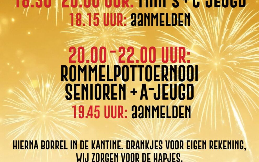 Zet alvast in de agenda: het nieuwjaarstoernooi op 2 januari! Pak je kans om het nieuwe jaar goed te beginnen…